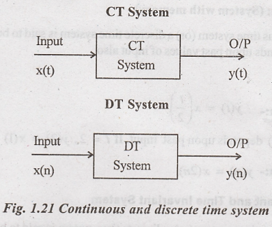 Systems are classified into two types. Thy are continuous time system(CTS) and discrete time (DT) system.