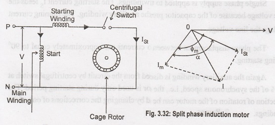 The single phase induction motors can be classified according to the phase difference produced between the currents in the main and auxiliary windings. The types are: (1) Split-phase motors (2) Capacitor-start motors (3) Capacitor-start capacitor run motors (4) Shaded-pole motors.